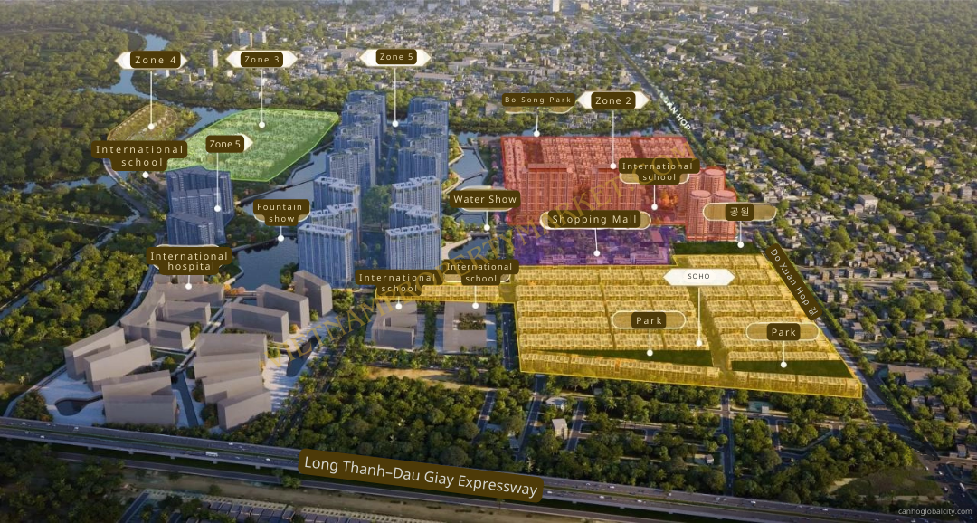 The Global City is a large-scale mixed-use township development covering a total area of 117.4 hectares, designed to include a full range of residential options — from townhouses and villas to high-end high-rise apartments.