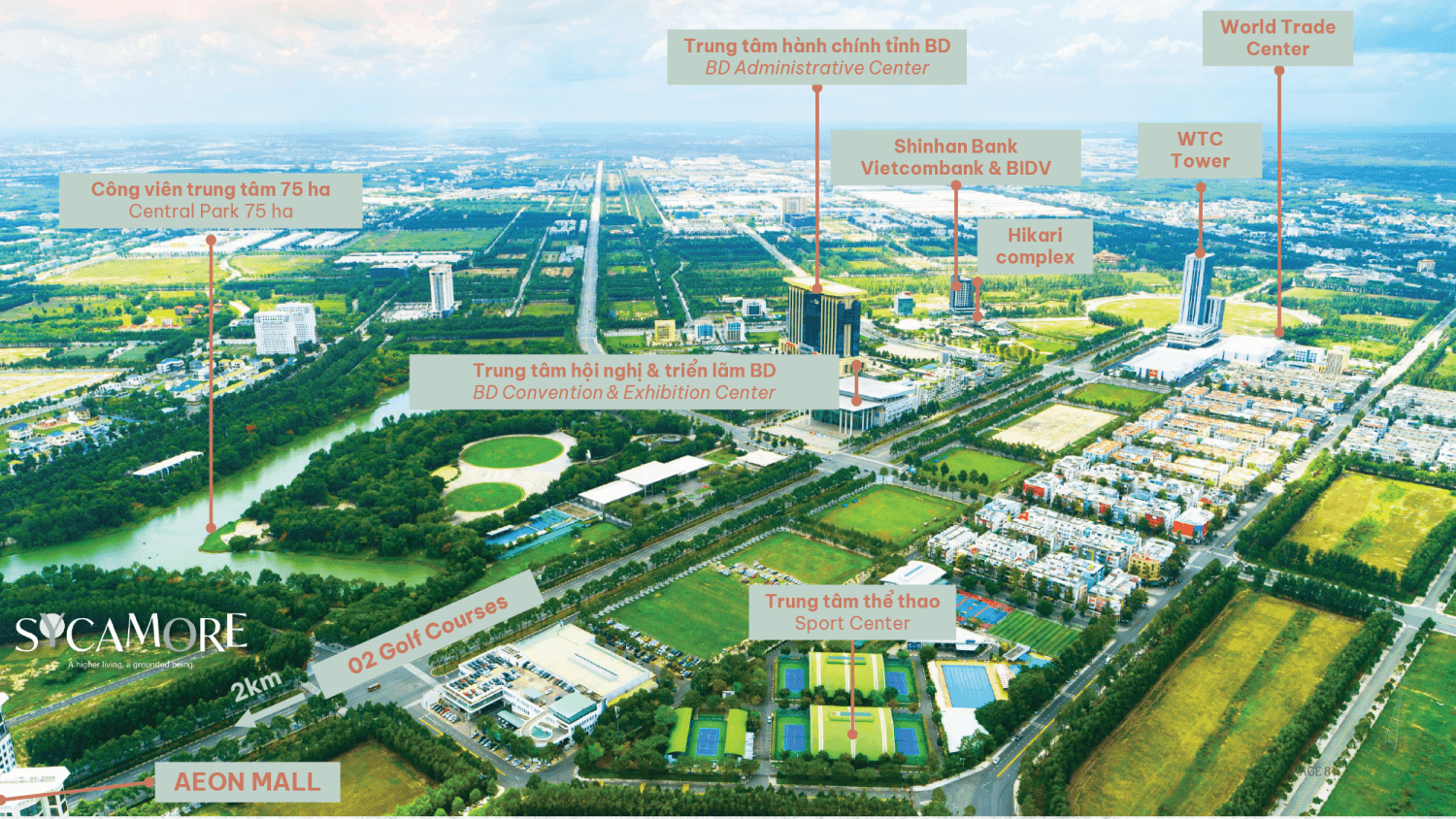 Sycamore is located in the bustling center of the new Bình Dương city, a rapidly developing area with modern infrastructure and full amenities. The project is positioned to become a smart, high-class community attracting many professionals and intellectuals.