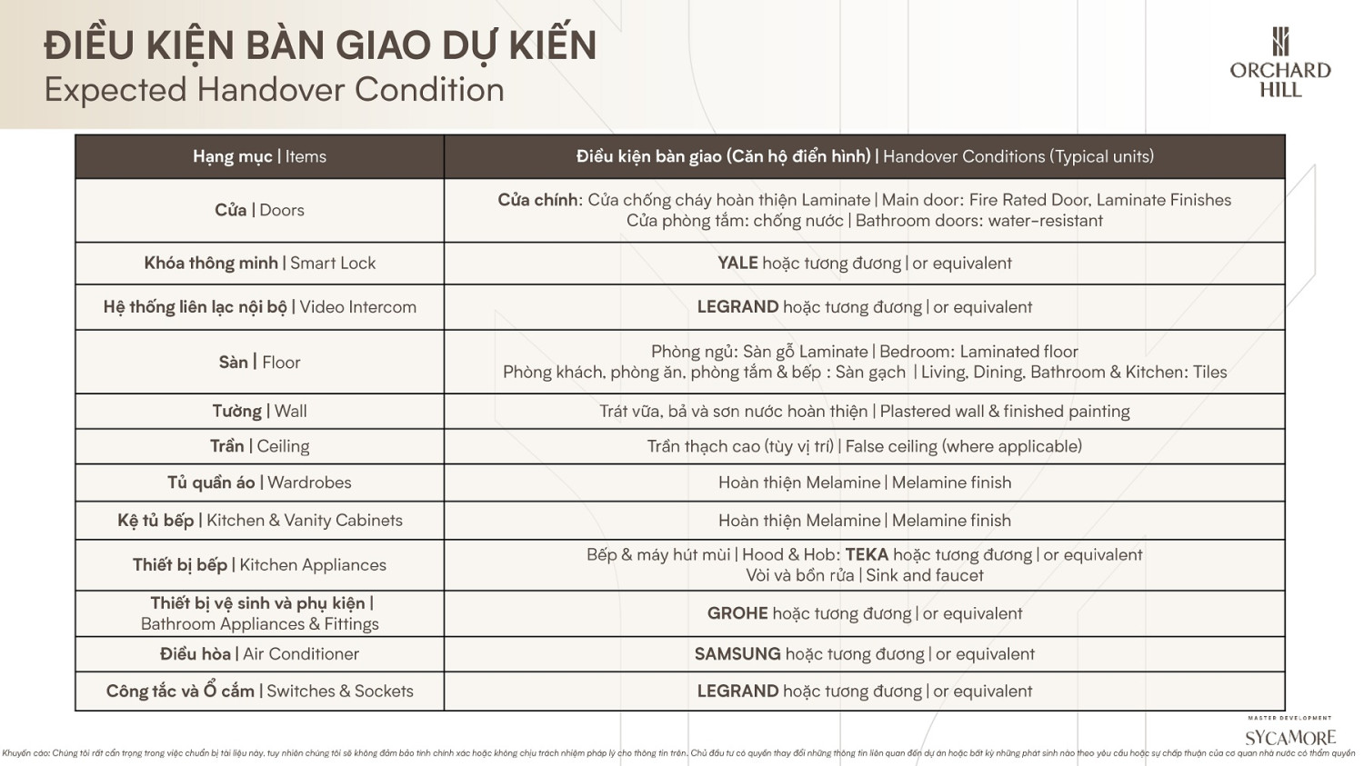 HANDOVER STANDARD – Sycamore Capitaland Binh Duong